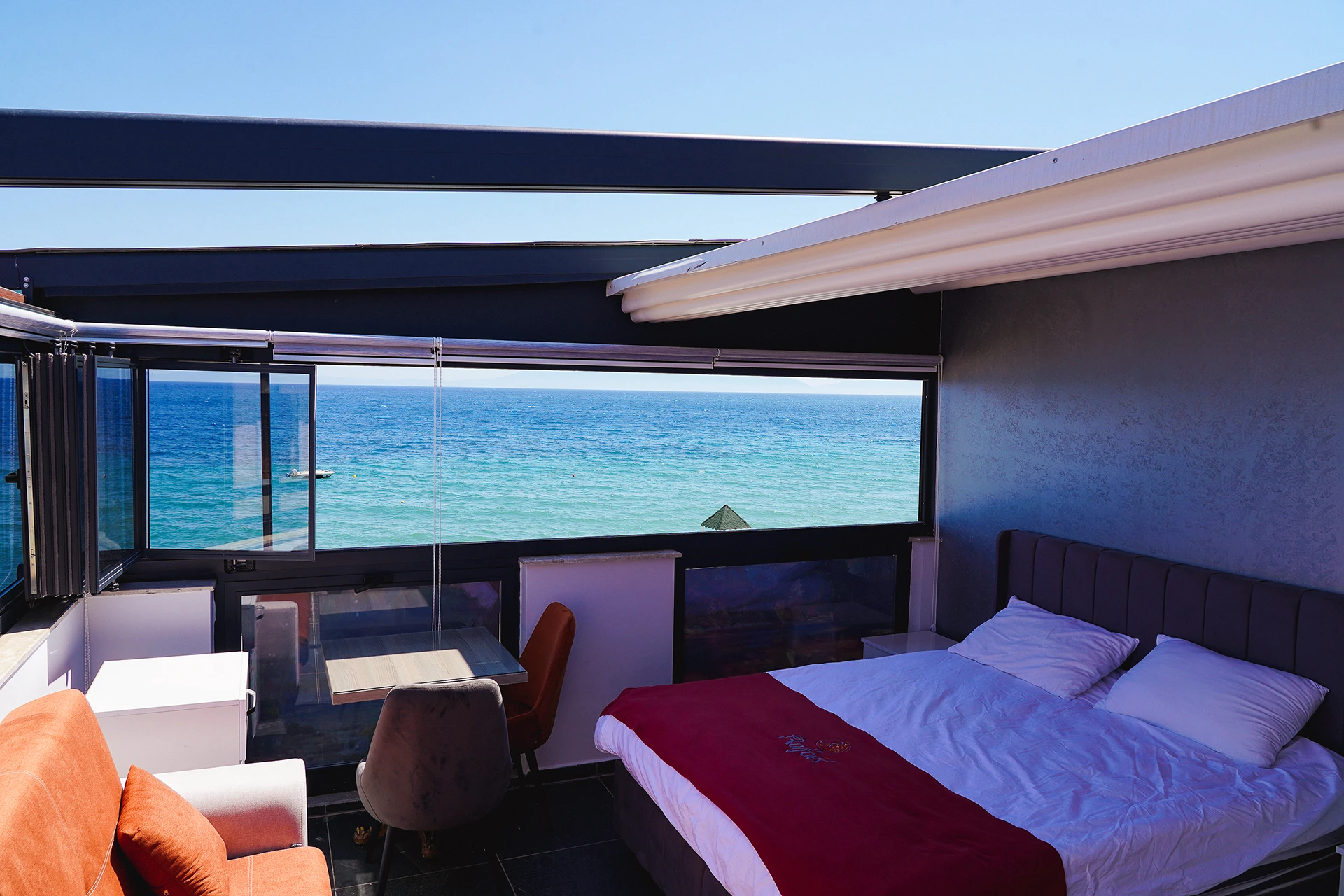 Deniz manzaralı odalarımız, Teras Suitlerimiz’de denize sıfır konum avantajımız sayesinde günün her anı özel bir deneyime dönüşüyor.